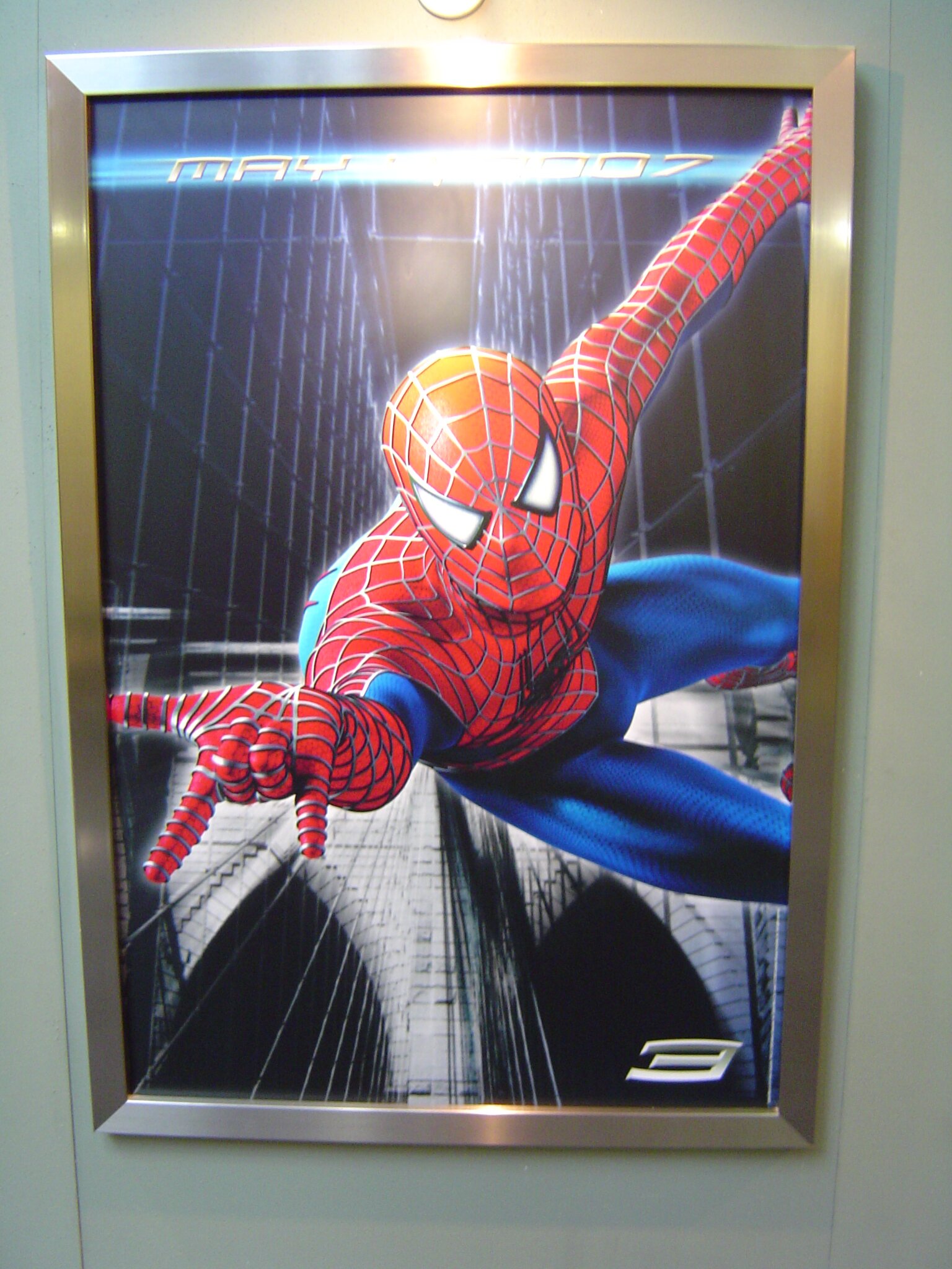 A Sony revelou o que pode ser o próximo pôster de Homem-Aranha <?:namespace prefix = st1 ns = "urn:schemas-microsoft-com:office:smarttags" />3. A imagem abaixo, divulgada pelo site Ain’t It Cool News, mostra o cartaz que está exposto no estande do estúdio na feira Licensing Show 2006, que acontece em Nova York. Clique na figura para ampliá-las: