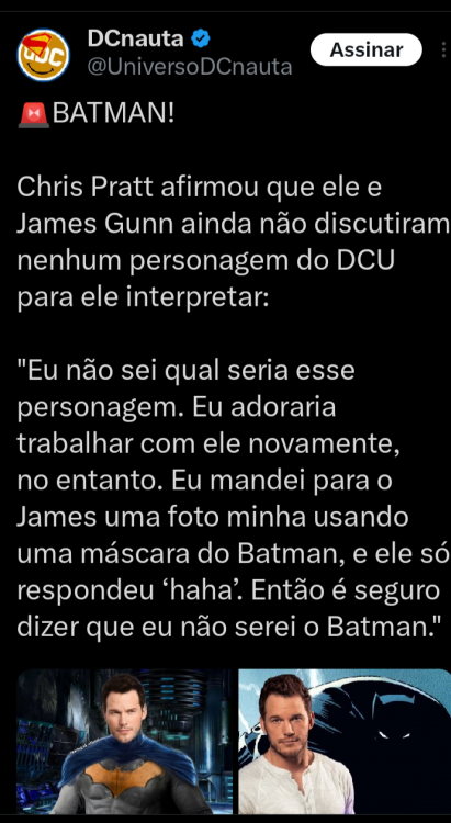 • Concordo com 2 Batman no Cinema uma canibalização da marca. Mas, pra mim o James Gunn iria colocar na mesa de  um "ALL-IN" pesado se quisesse um Batman exclusivo, por isso inventou essa "elseworld" pa