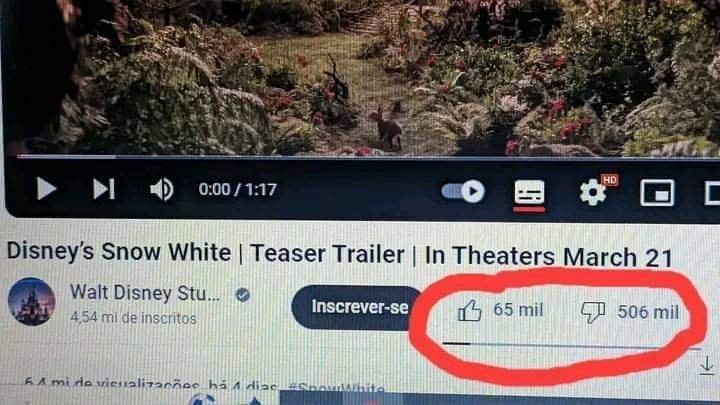 A Disney lançou o trailer de madrugada pra fugir do radar dos haters....entrei nos comentários do Youtube e só tinha gente dizendo que nunca a feiticeira teria inveja da beleza da branca de neve, outros chamando o espelho de cego.... kkk