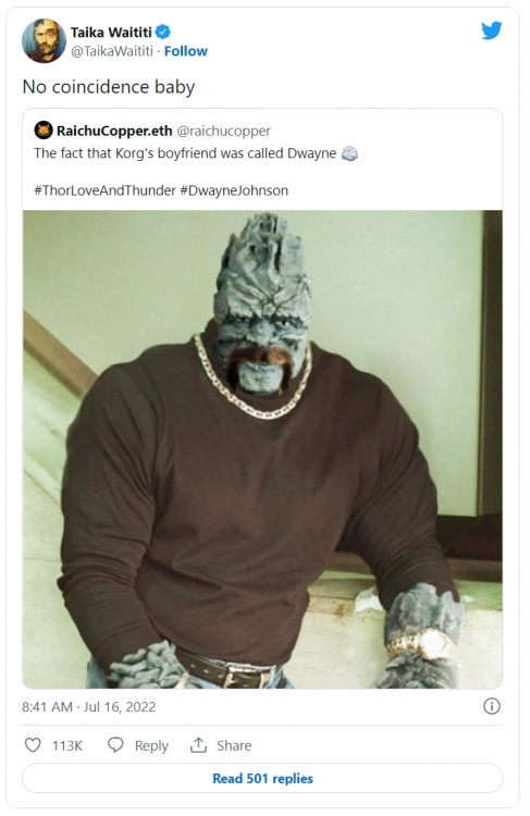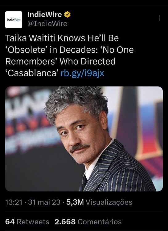 É, o Taika vai ter que dar uma boa desenvolvida nela. O bom é que pelo menos no THOR: O MUNDO SOMBRIO ela já começou a interpretar a personagem com um viés mais cômico, então ela  já vai tá meio pronta pro que o Taika deve querer fazer. Eu me pergunto também como vai se dar essa transformação dela em Thor, já que nos quadrinhos, ela precisa do Mjolnir pra isso, e o nosso foi destruído  (o que o Capitão usou era do passado, e ele devolveu na viagem que faz no final de ULTIMATO).